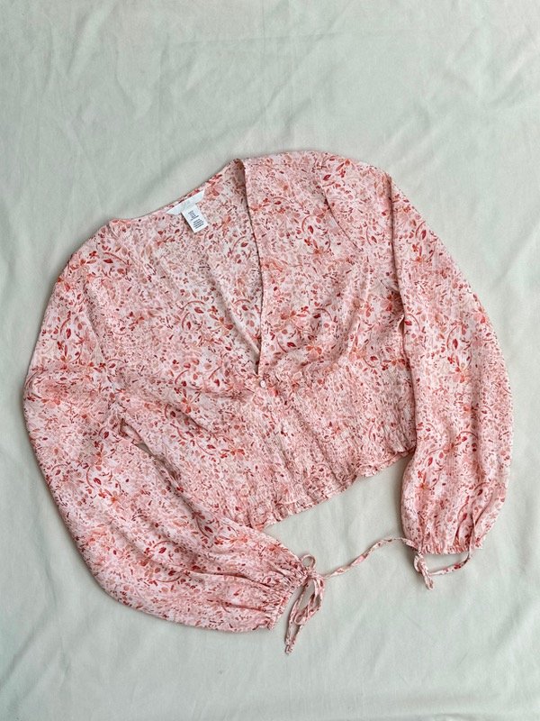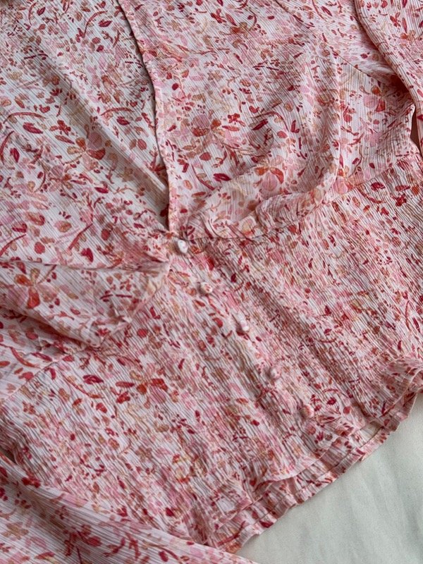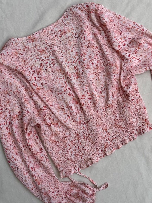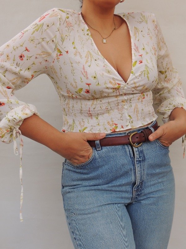 Blusa retro code tela tipo gasa satinada con frunce elastizado en el bajo busto y espalda corte princesa romántica.