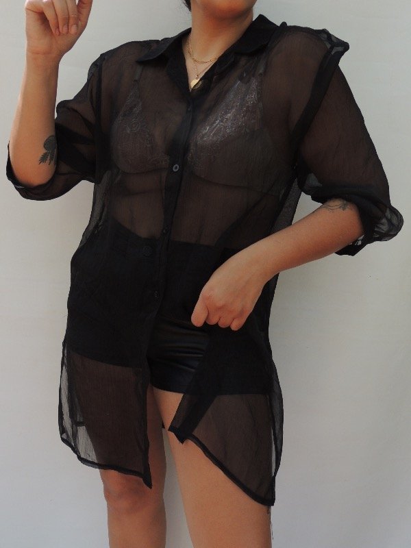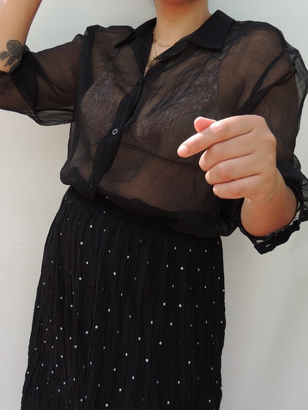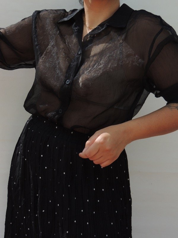 Camisa vintage satinada con transparencia la tela es muy parecida a una organza.
