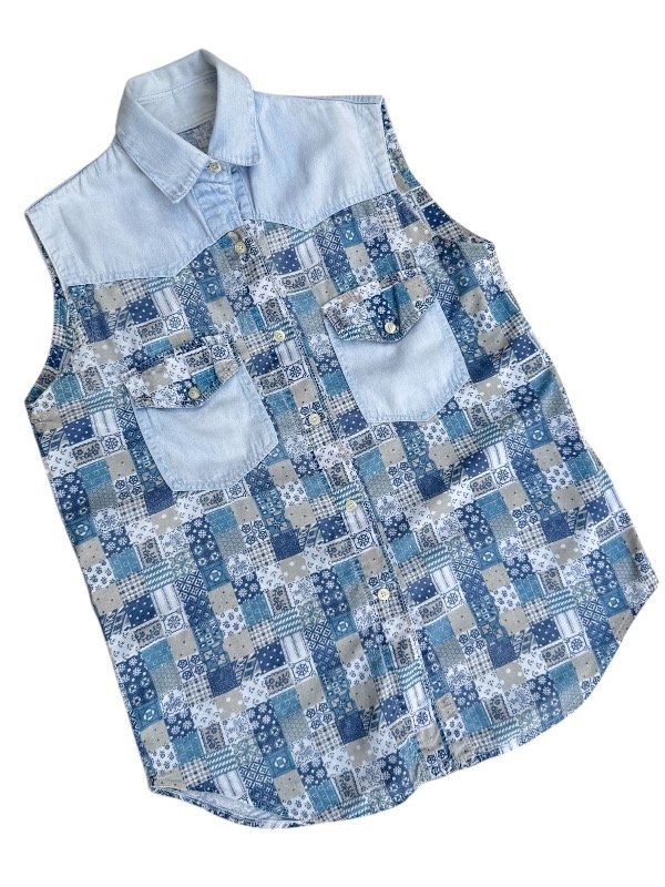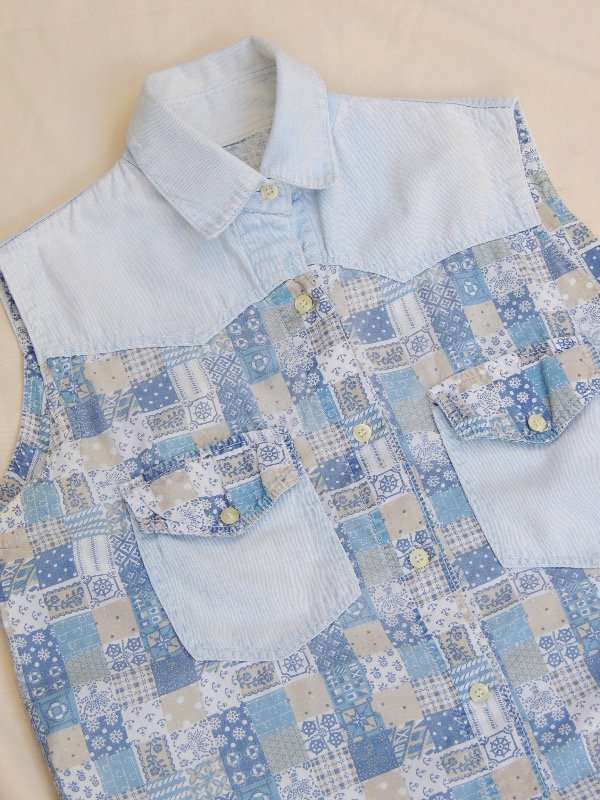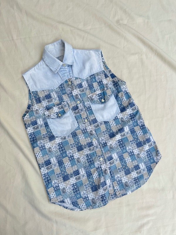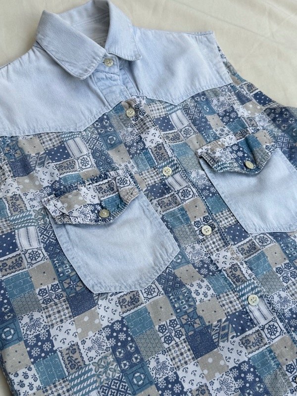 Camisa vintage 90s algodón y denim combinada efecto patchwork