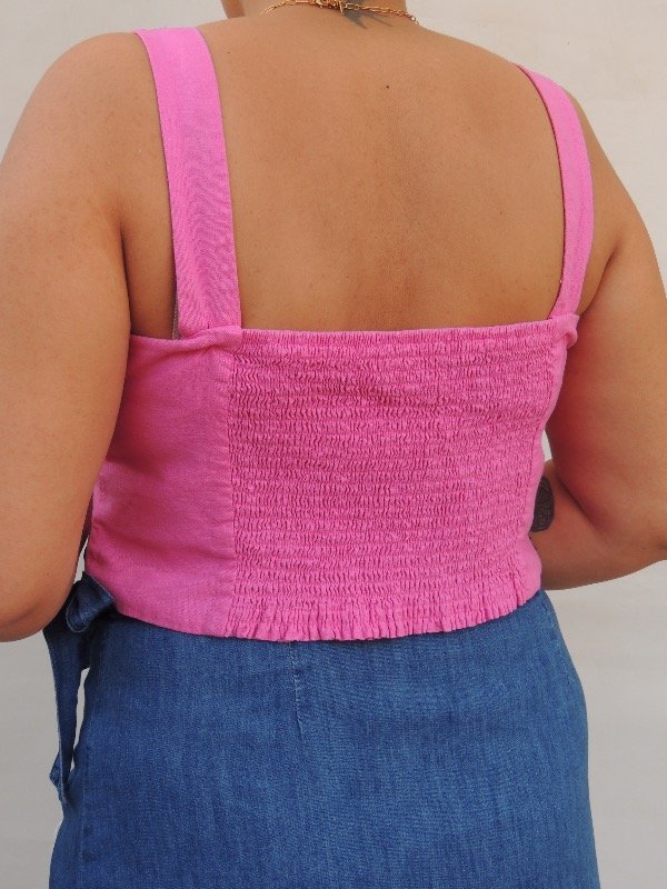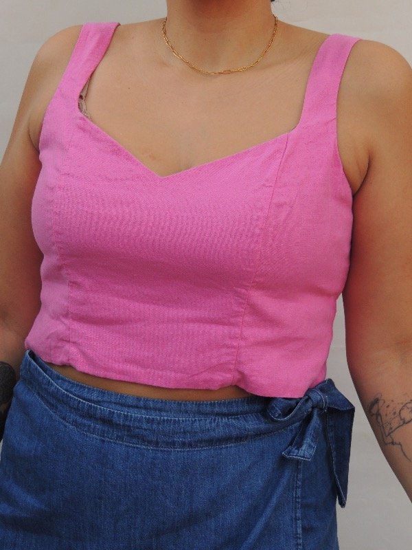 Top de lino y algodón calidad premium en todo el top la tela está doble lo que le da estructura tiene doble botón para regular los breteles y espalda elastizada.