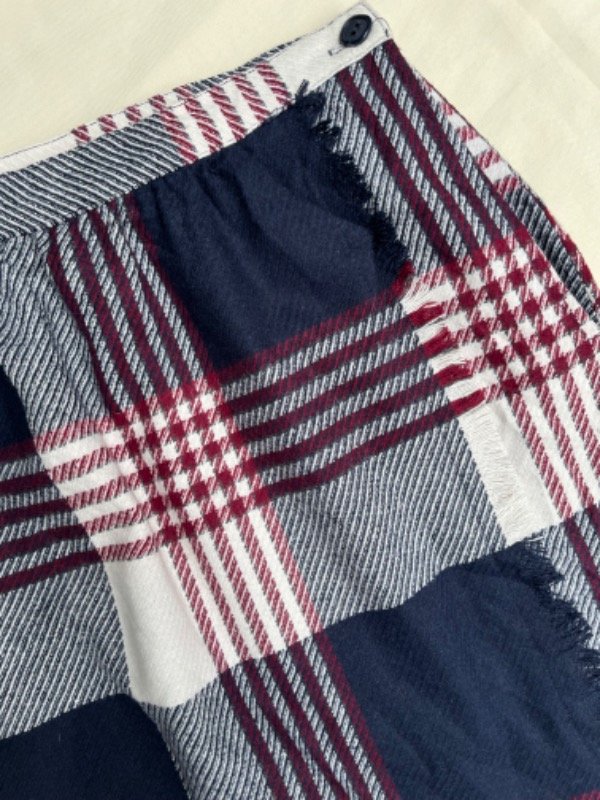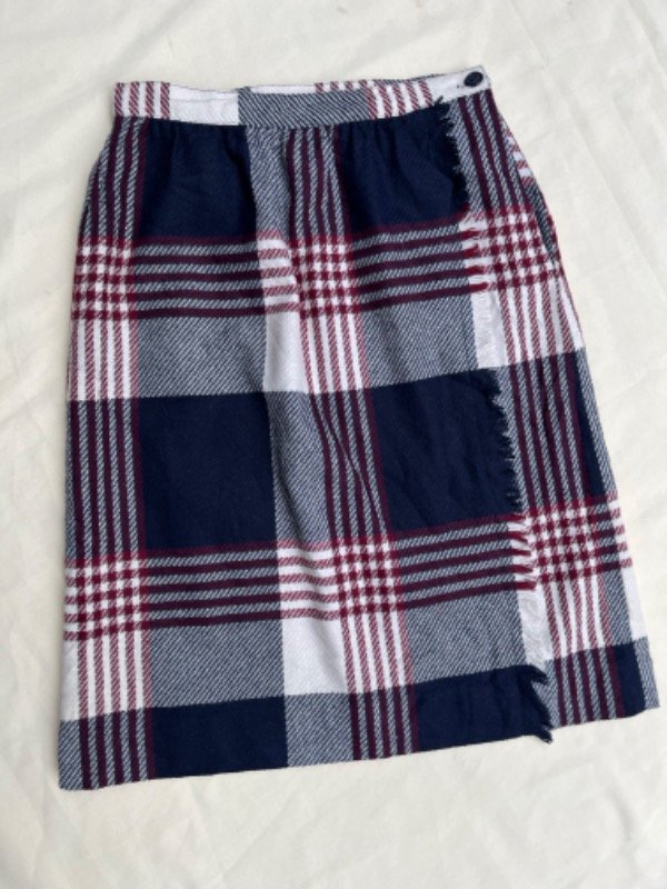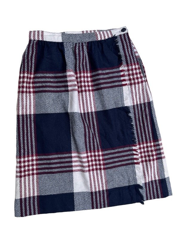 Falda vintage simula ser cruzada con forro interno. Posee bolsillo.