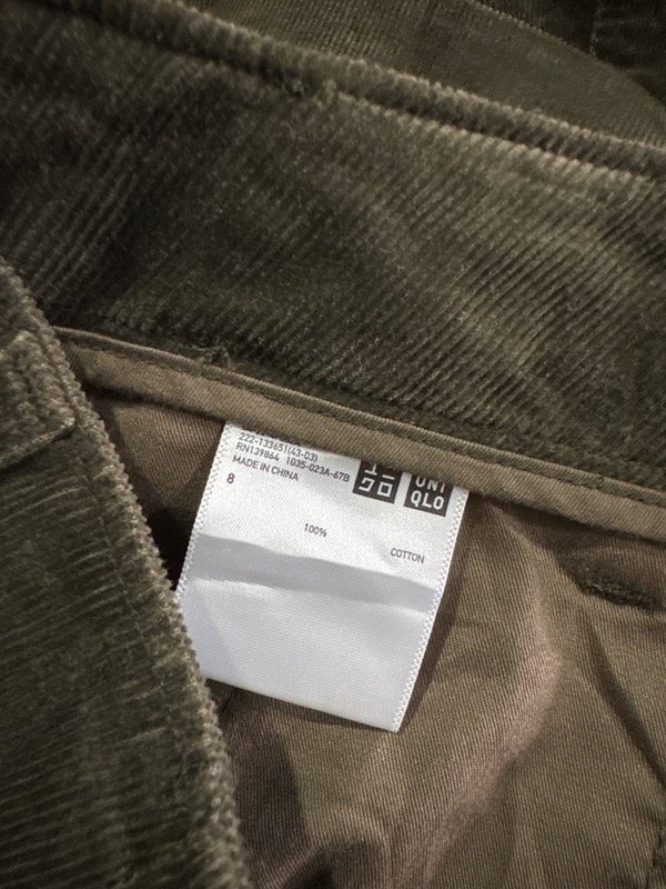 Mini de micro Corderoy corte clásico 100% algodón. Marca UNIQLO