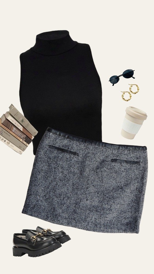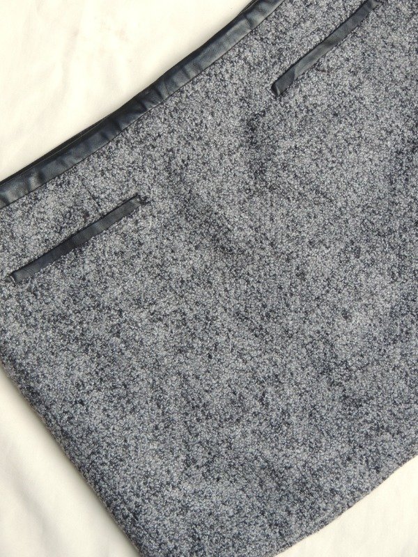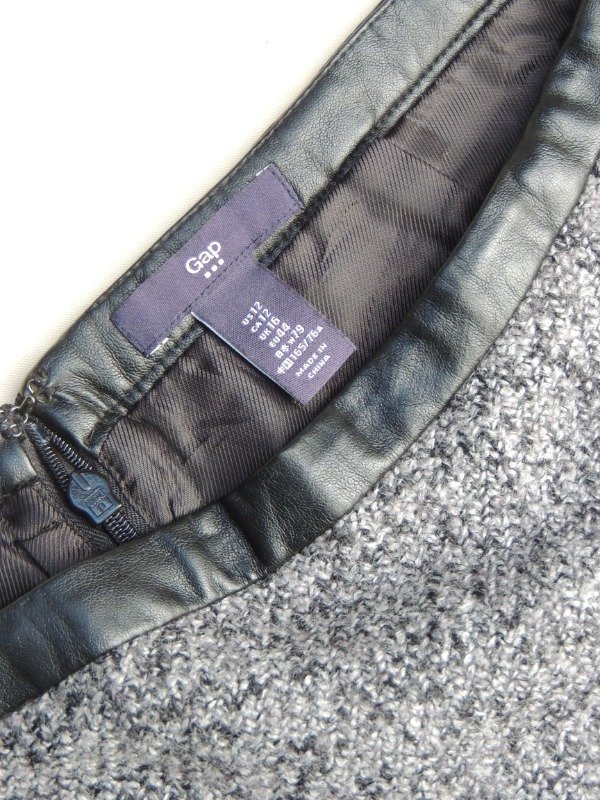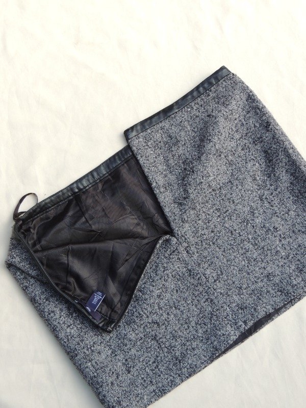 Minifalda de paño liviano, forrada con detalles de cuero.