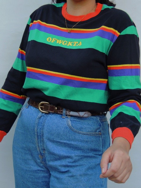 Remera manga larga retro con bordado en el frente.