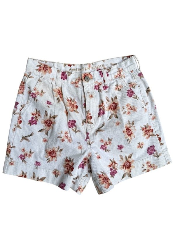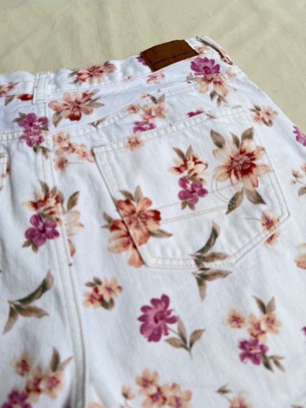 Short de Jean blanco estampado con pinzas tiro alto.