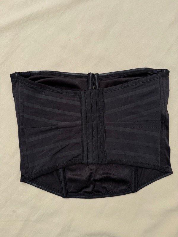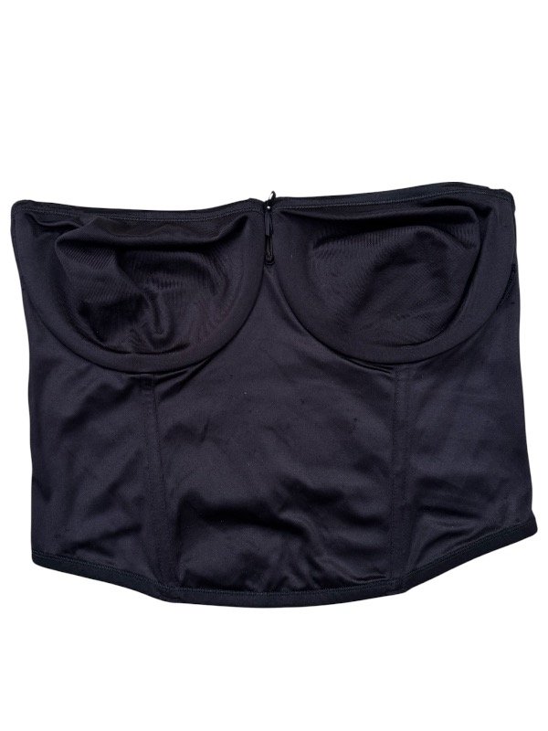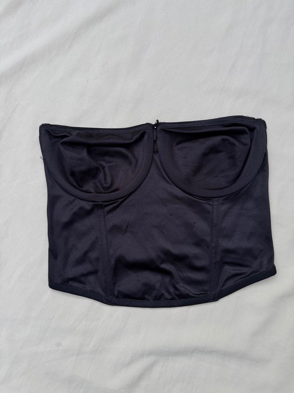Búsquete vintage de tela satinada al frente con dos ballenas al frente, dos bellezas laterales y aro en el busto